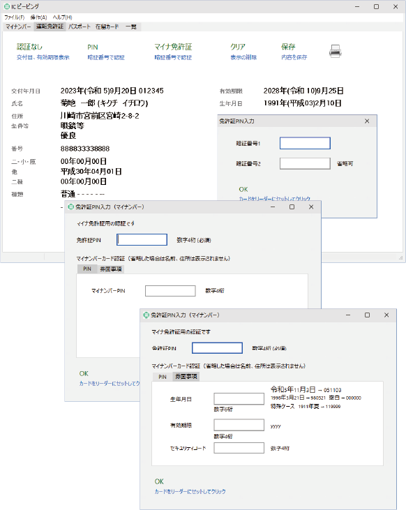 運転免許証 - 認証なし、PINコード認証