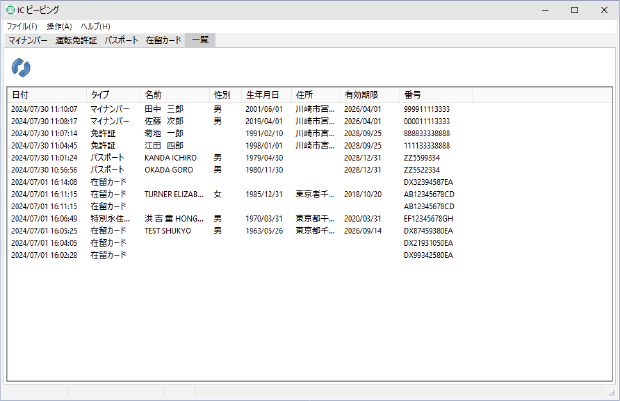 氏名、生年月日、住所、顔写真を表示