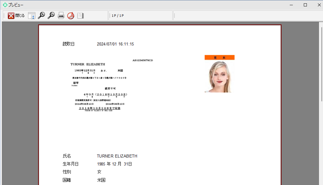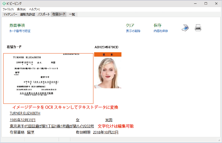 在留カードは券面イメージ、顔写真をICから取り出します。